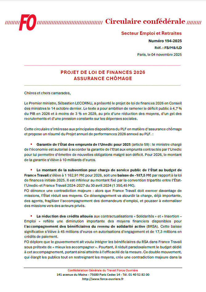 PLF 2026 : Assurance Chômage