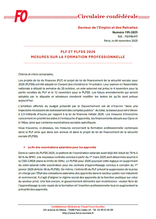 PLF 2026 : Formation Professionnelle