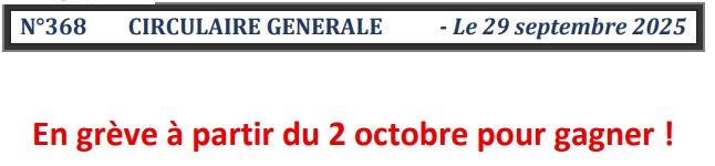 CIRCULAIRE GENERALE N°368 du 29 septembre 2025