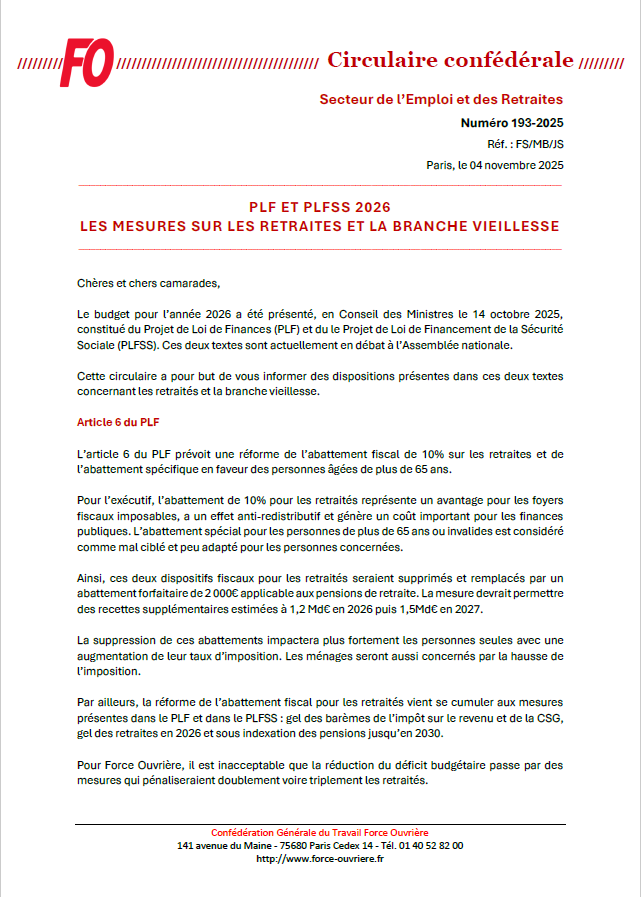 Icône PDF Circ. n° 193-2025 -PLF et PLFSS 2026 - Les mesures sur les retraites et la branche vieillesse.pdf